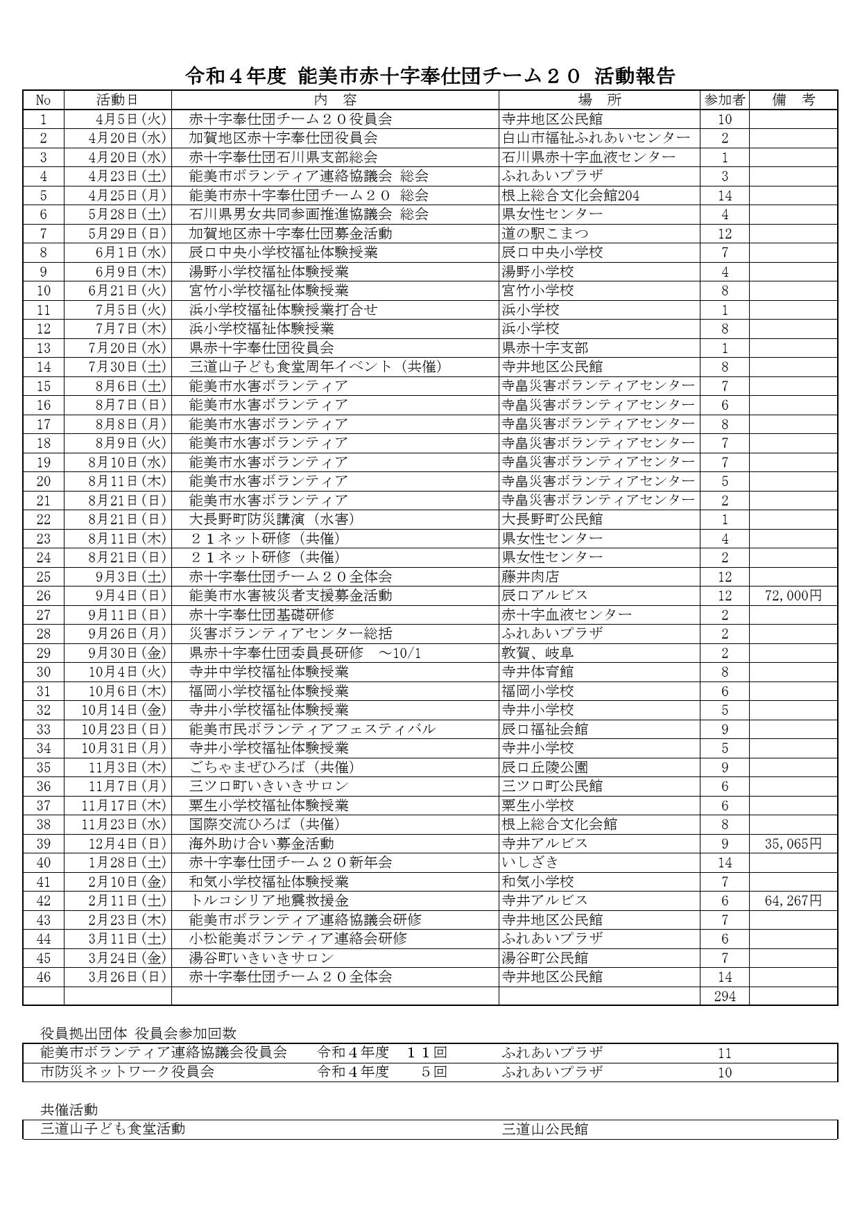 2023年4月24日 能美市赤十字奉仕団チーム20総会